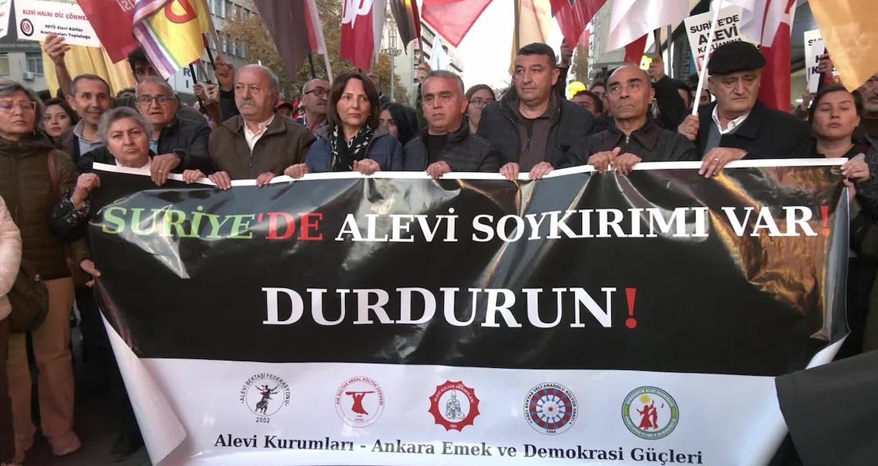 Alevi Bektaşi Federasyonu, Pir Sultan Abdal Kültür Derneği, Alevi Kültür Dernekleri, Demokratik Alevi Dernekleri ve Ankara Emek ve Demokrasi Güçleri tarafından organize edilen yürüyüşte, “Suriye’de katliam var”, “Aleviler katlediliyor” pankartları taşındı. Katılımcılar, “Katil ABD Ortadoğu’dan defol”, “Susma sustukça sıra sana gelecek”, “Susma haykır, Alevilik haktır”, “Ya hep beraber ya hiçbirimiz” ve “Yaşasın halkların kardeşliği” sloganları attı.