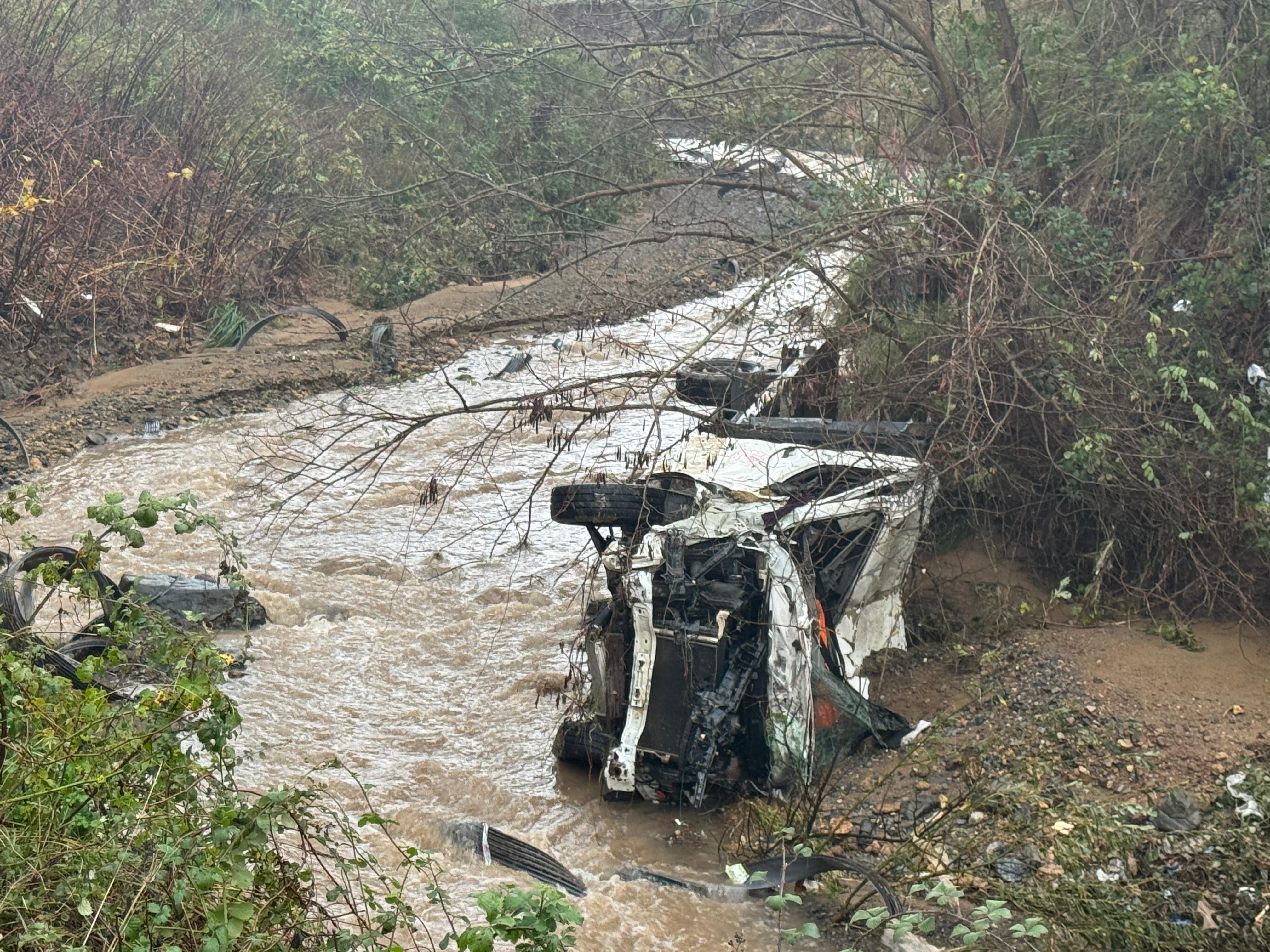 Yol çöktü: Pikap ile kamyonet dereye yuvarlandı